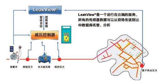 通过在供水管线上(通常与DMA 分区结合)加装水力减压阀及智能压力控制系统,依据所控制区域的流量、压力监测数据分析变化曲线及规律,以此为基础按实际需求对阀后压力进行动态调节,从而实现对控制区压力的精细化管理,有效降低冗余水头并带来相应的综合效益。