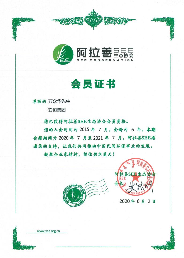安恒集团热心社会公益事业,积极践行企业社会责任。2015年7月,安恒加入阿拉善SEE生态协会;2018年8月,成为阿拉善SEE生态协会三江源项目中心创始会员。多年来,安恒集团发起和参与了多项生态公益活动,长期支持阿拉善SEE生态保护协会三江源保护项目。
